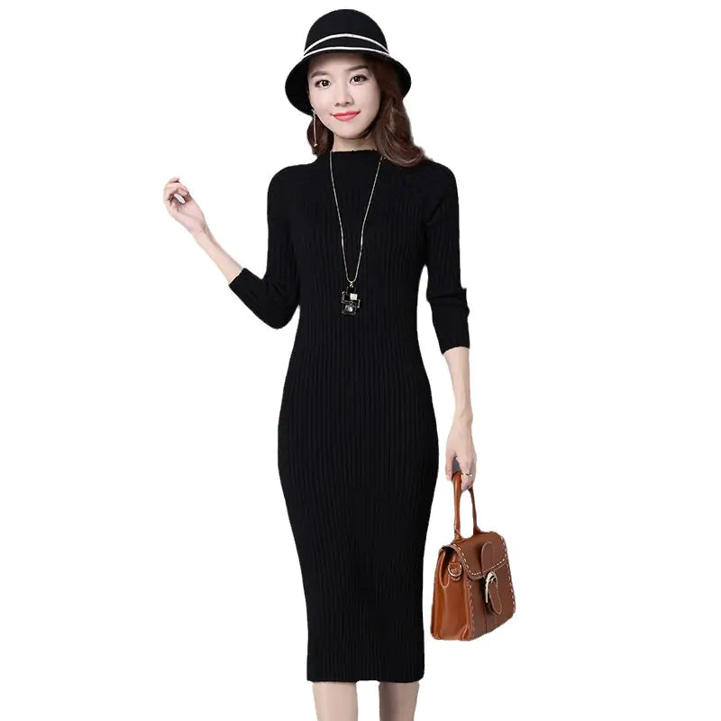 Featuring long sleeves and a form-fitting hip-skirt design, this knitted dress beautifully accentuates your curves while maintaining a refined, polished look. The long skirt length adds sophistication, making it easy to style for both casual outings and more formal occasions. Whether layered with boots and a coat or styled on its own, this versatile piece adapts effortlessly to your wardrobe.